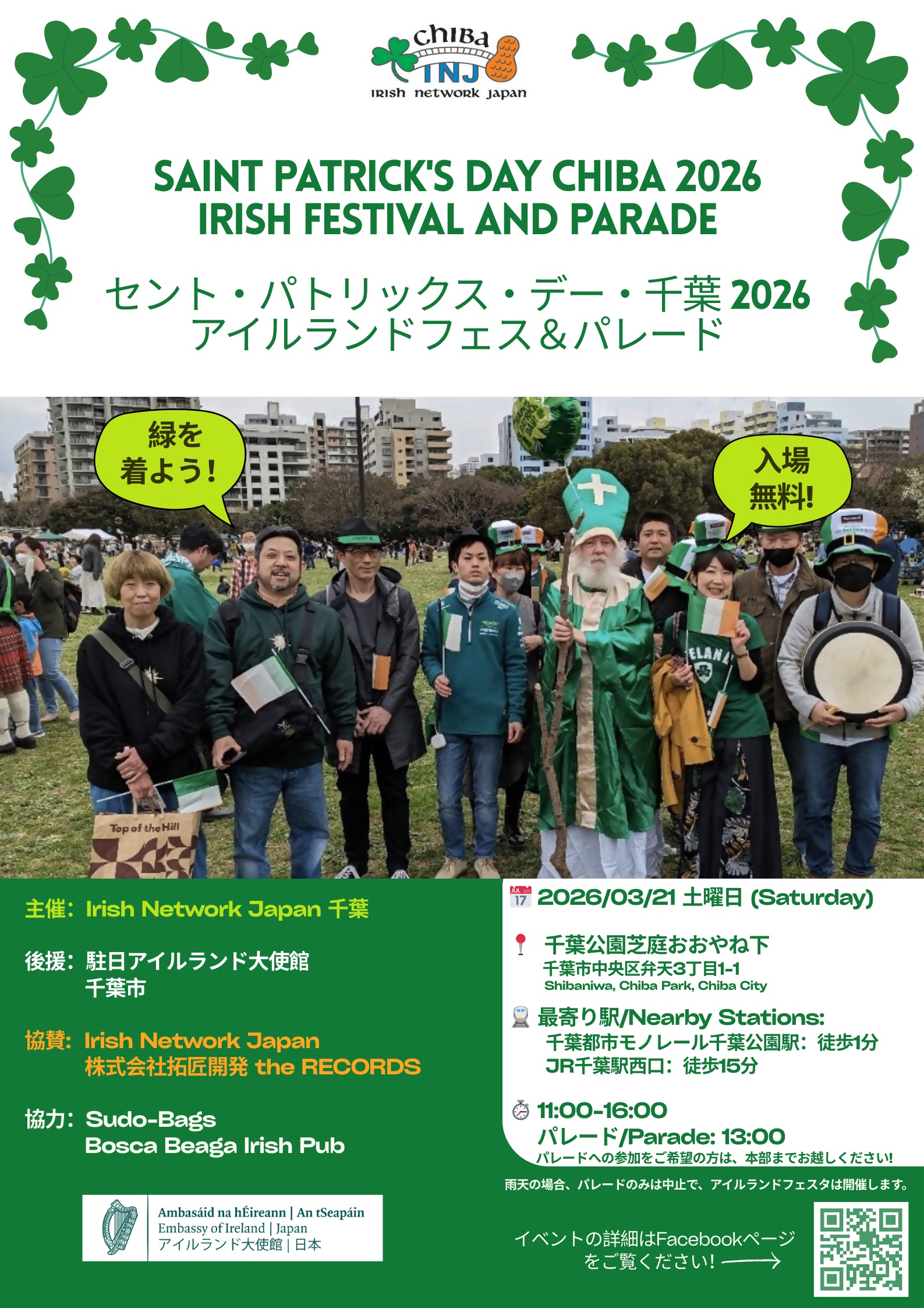 千葉公園芝庭にて「セント・パトリックス・デー・パレード千葉2026アイリッシュ・フェス&パレー」