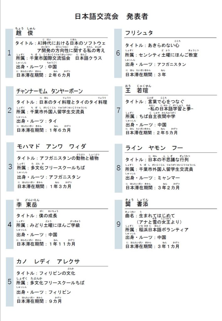 第9回日本語交流会 来場者募集